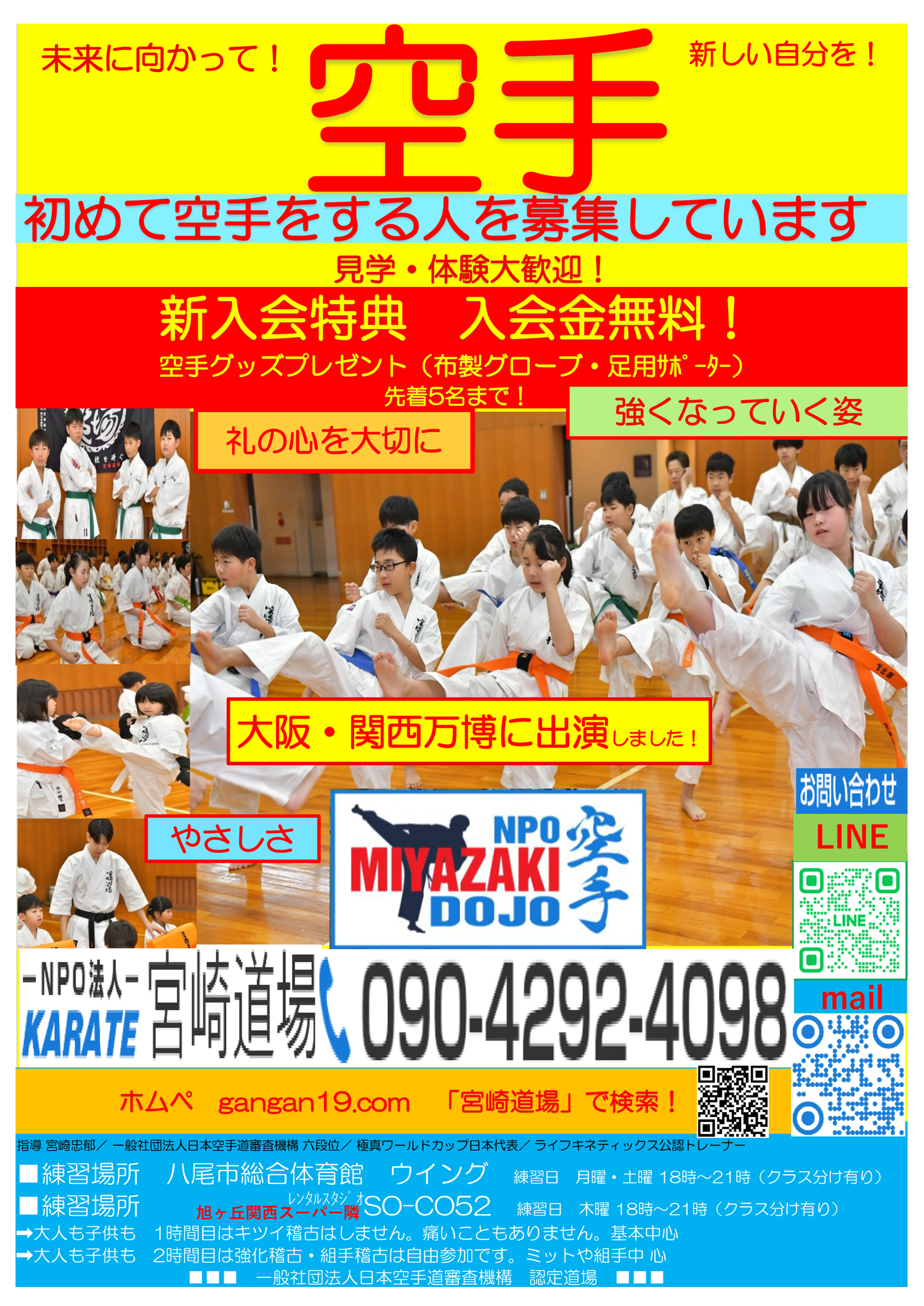 大阪を中心に5箇所で空手を教えています