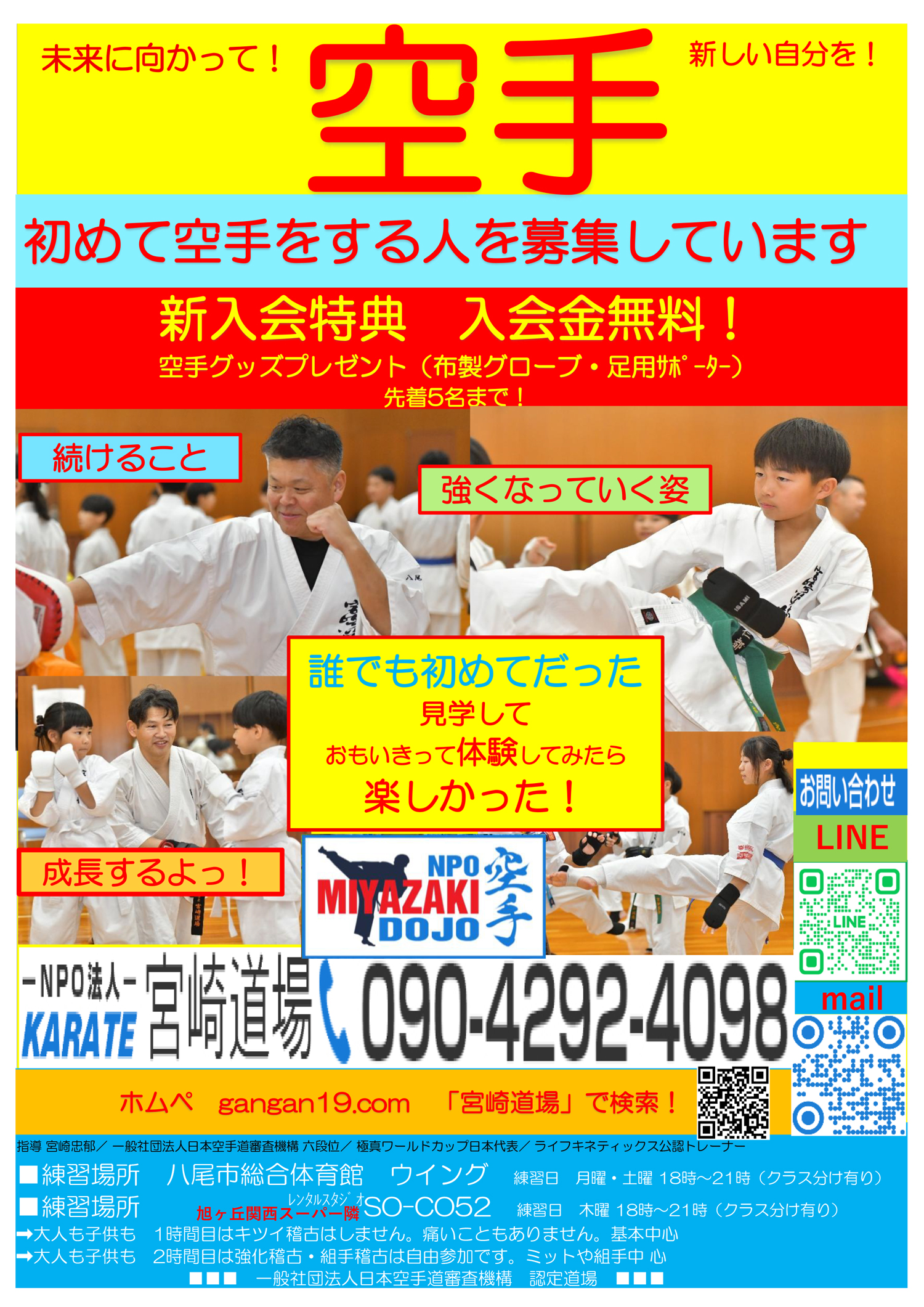 大阪府八尾市と高槻市、そして徳島、さらに伊丹の空手道場です。